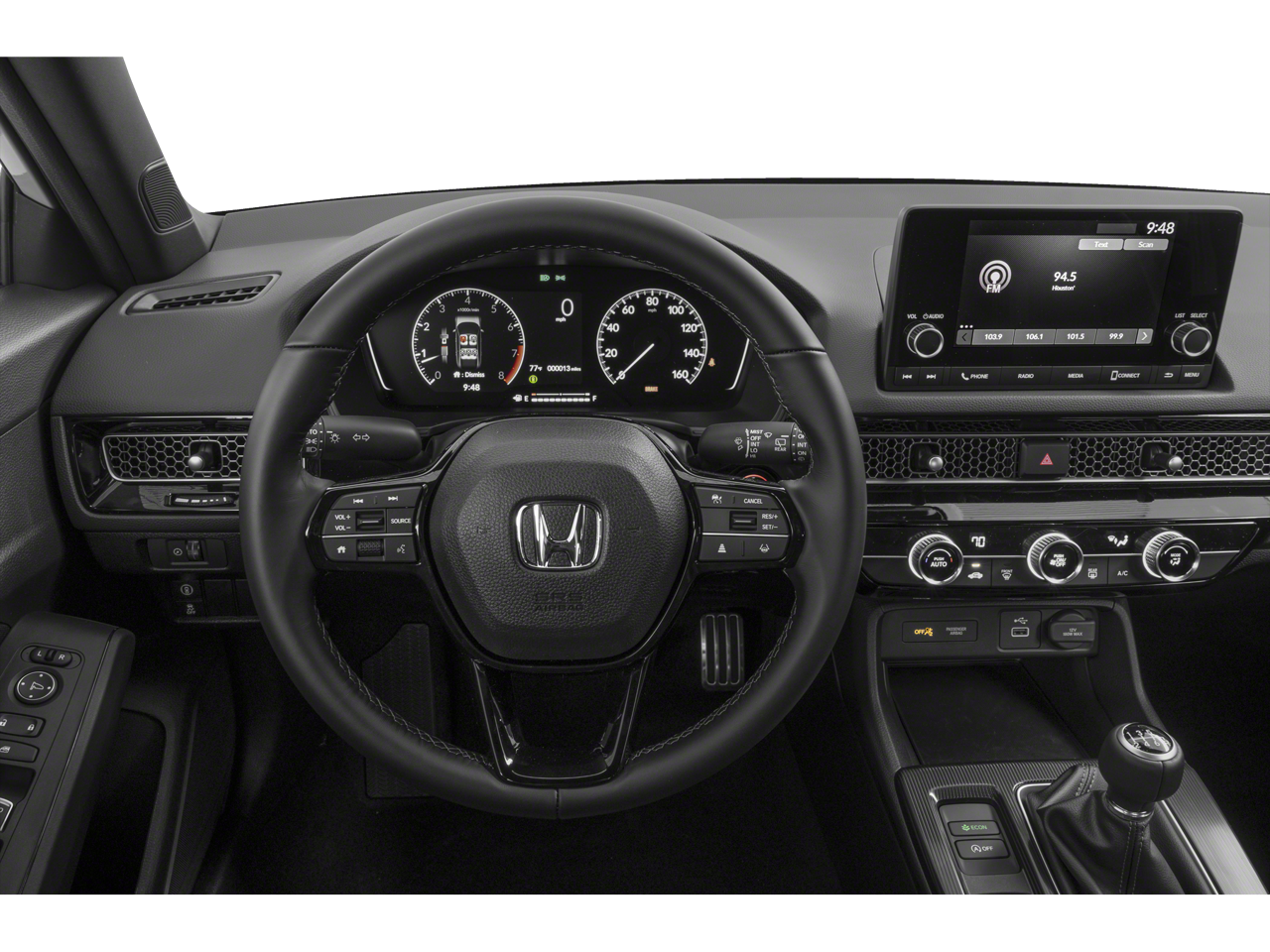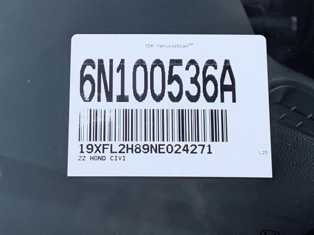 Black Cloth, 18" Alloy Wheels, 4-Wheel Disc Brakes, 8 Speakers, ABS brakes, Adaptive Cruise Control: Adaptive Cruise Control (ACC) with Low-Speed Follow, Alloy wheels, AM/FM radio, Apple CarPlay/Android Auto, Auto High-beam Headlights, Automatic temperature control, Brake assist, Bumpers: body-color, Delay-off headlights, Driver door bin, Driver vanity mirror, Dual front impact airbags, Dual front side impact airbags, Electronic Stability Control, Emergency communication system: HondaLink, Exterior Parking Camera Rear, Fabric Seating Surfaces, Forward collision: Collision Mitigation Braking System (CMBS) + FCW mitigation, Four wheel independent suspension, Front anti-roll bar, Front Bucket Seats, Front Center Armrest, Front reading lights, Fully automatic headlights, Illuminated entry, Knee airbag, Lane departure: Lane Keeping Assist System (LKAS) active, Leather Shift Knob, Leather steering wheel, Low tire pressure warning, Occupant sensing airbag, Outside temperature display, Overhead airbag, Panic alarm, Passenger door bin, Passenger vanity mirror, Power door mirrors, Radio data system, Radio: 180-Watt Audio System, Rear anti-roll bar, Rear side impact airbag, Rear window wiper, Remote keyless entry, Security system, Speed control, Speed-sensing steering, Split folding rear seat, Steering wheel mounted audio controls, Tachometer, Telescoping steering wheel, Tilt steering wheel, Traction control, Trip computer, Voltmeter.2022 Honda Civic Sport