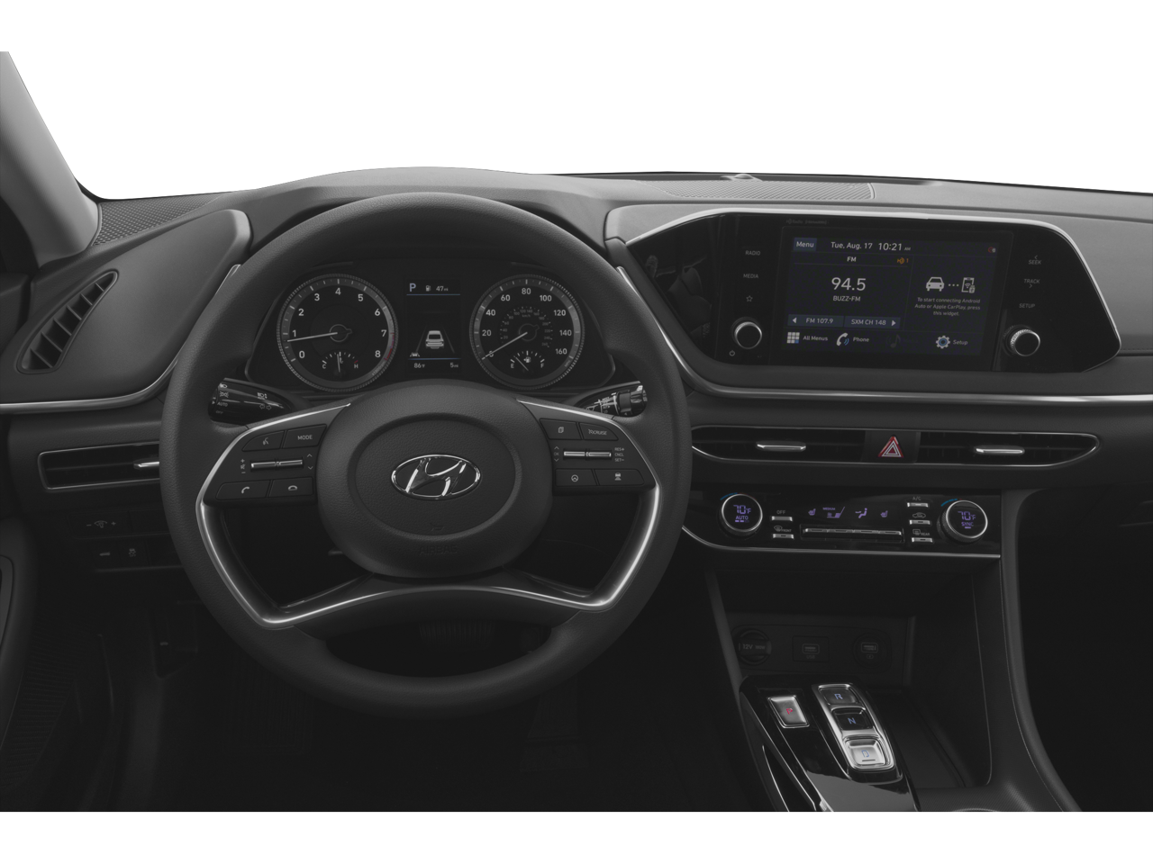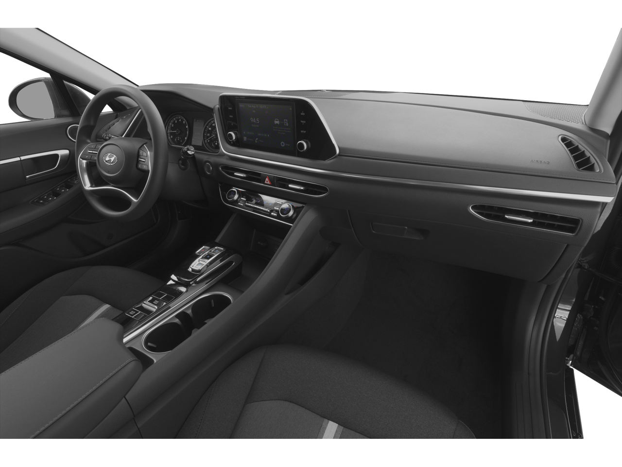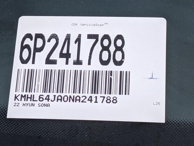 Black Cloth, 17" x 7.0J Aluminum Alloy Wheels, 4-Wheel Disc Brakes, 6 Speakers, ABS brakes, Alloy wheels, AM/FM radio: SiriusXM, Apple CarPlay & Android Auto, Auto High-beam Headlights, Automatic temperature control, Brake assist, Bumpers: body-color, Cargo Hook, Cargo Net, Cargo Package (DISC), Carpeted Floor Mats, Delay-off headlights, Driver door bin, Driver vanity mirror, Dual front impact airbags, Dual front side impact airbags, Electronic Stability Control, Emergency communication system: Blue Link Connected Car Service (3-year complimentary subscription), Exterior Parking Camera Rear, First Aid Kit, Four wheel independent suspension, Front anti-roll bar, Front Bucket Seats, Front Center Armrest, Front dual zone A/C, Fully automatic headlights, Heated door mirrors, Heated Front Bucket Seats, Heated front seats, Knee airbag, Low tire pressure warning, Occupant sensing airbag, Option Group 01, Outside temperature display, Overhead airbag, Overhead console, Panic alarm, Passenger door bin, Passenger vanity mirror, Power door mirrors, Power steering, Power windows, Premium Cloth Seating Surfaces, Radio data system, Radio: AM/FM/MP3/HD/SiriusXM Display Audio, Rear anti-roll bar, Rear seat center armrest, Rear side impact airbag, Remote keyless entry, Reversible Cargo Tray, Security system, Speed control, Speed-sensing steering, Speed-Sensitive Wipers, Split folding rear seat, Steering wheel mounted audio controls, Tachometer, Telescoping steering wheel, Tilt steering wheel, Traction control, Trip computer, Turn signal indicator mirrors, Variably intermittent wipers.2022 Hyundai Sonata SEL