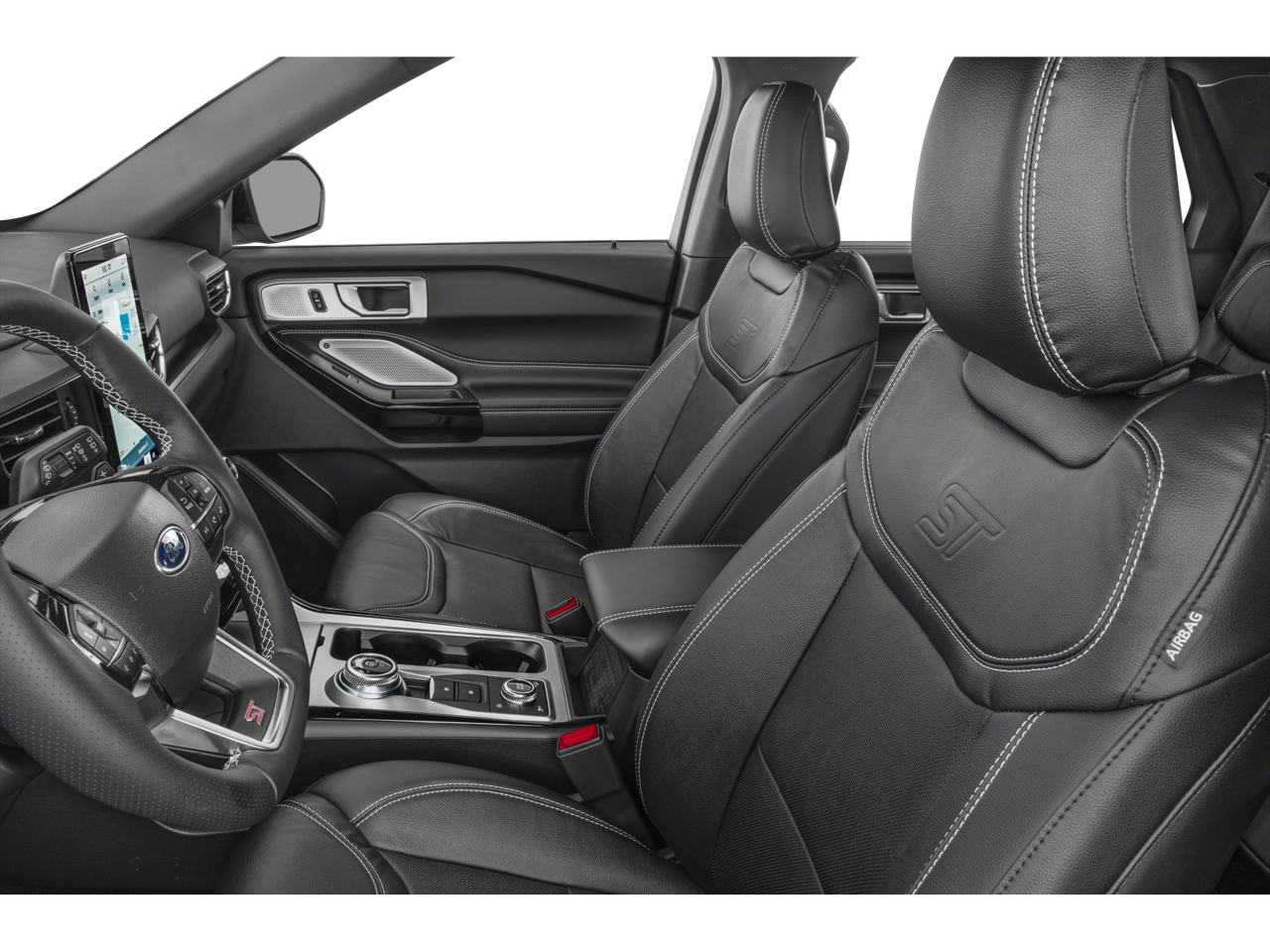 4WD, 10.1 LCD Capacitive Portrait Touchscreen, 110V/150W AC Power Outlet, 2 Additional Speakers, 20 Machined Aluminum w/Painted Pockets Wheels, 3.58 Non-Limited-Slip Rear Axle Ratio, 360-Degree Camera w/Split View, 3rd row seats: bench, 4-Wheel Disc Brakes, 4G LTE Wi-Fi Hotspot Credit, 6 Speakers, ABS brakes, Alloy wheels, AM/FM radio: SiriusXM, Auto High-beam Headlights, Auto-Dimming Rearview Mirror (Interior), Automatic temperature control, Brake assist, Bumpers: body-color, Compass, Delay-off headlights, Driver vanity mirror, Dual front impact airbags, Dual front side impact airbags, Electronic Stability Control, Emergency communication system: SYNC 3 911 Assist, Equipment Group 401A, Evasive Steering Assist, Exterior Parking Camera Rear, Ford Co-Pilot360 Assist+, Four wheel independent suspension, Front anti-roll bar, Front Bucket Seats, Front Center Armrest, Front dual zone A/C, Front fog lights, Front Parking Sensors, Front Rain-Sensing Wipers, Front reading lights, Fully automatic headlights, Heated door mirrors, Heated front seats, Heated steering wheel, Illuminated entry, Intelligent Adaptive Cruise Control, Knee airbag, Leather Htd/Ventilated Sport Captain's Chairs, Leather steering wheel, Low tire pressure warning, Memory Driver's Seat, Occupant sensing airbag, Outside temperature display, Overhead airbag, Overhead console, Panic alarm, Passenger door bin, Performance Front & Rear Brakes, Power door mirrors, Power Liftgate, Power passenger seat, Power Tilt/Telescoping Steering Column, Radio: B&O Sound System by Bang & Olufsen, Rear air conditioning, Rear anti-roll bar, Rear window defroster, Rear window wiper, Remote keyless entry, Reverse Brake Assist, Second Row Heated Seats, Security system, SelectShift Capability w/Paddle Shifters, Sideview Mirrors w/Gloss Black Caps, Speed control, Speed Sign Recognition, Speed-sensing steering, Speed-Sensitive Wipers, Split folding rear seat, Spoiler, Sport steering wheel, ST High Package, ST Street Pack, Steering wheel mounted audio controls, SYNC 3/Apple CarPlay/Android Auto, Tachometer, Technology Package, Telescoping steering wheel, Third Row PowerFold (Folds Flat), Traction control, Twin Panel Moonroof, Variably intermittent wipers, Ventilated front seats, Voice-Activated Touchscreen Navigation System, Wheels: 21 Aluminum.2023 Ford Explorer STClean CARFAX.