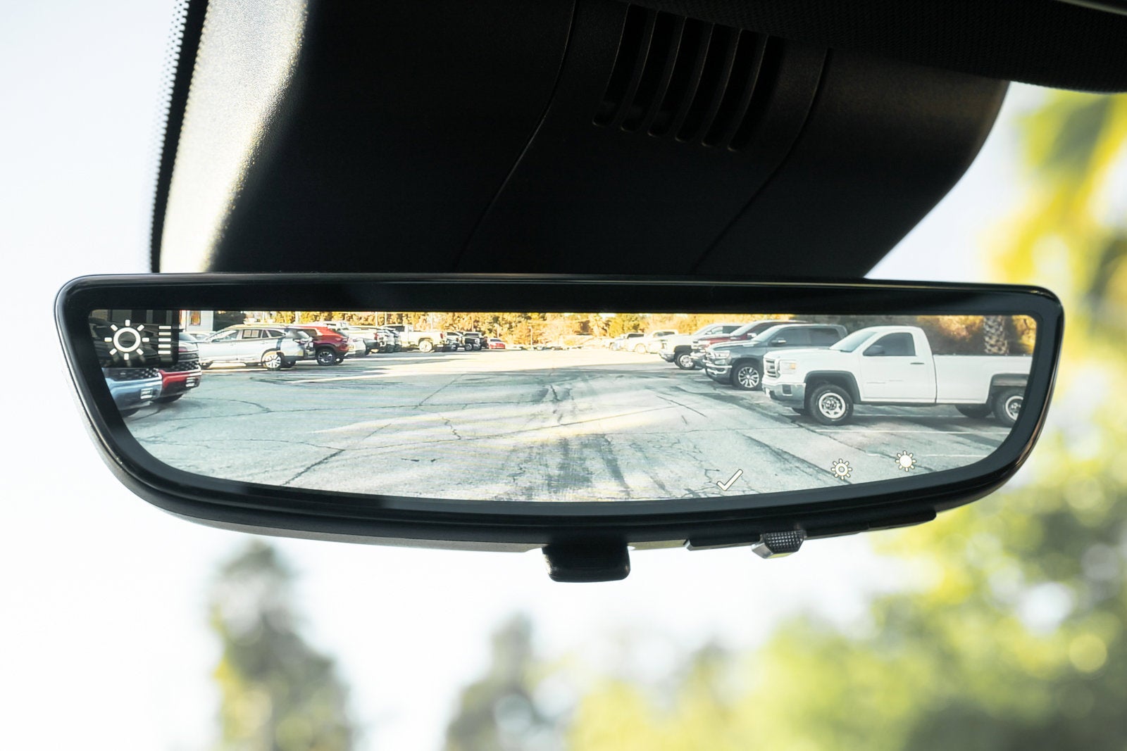 - The driver auto-dimming feature automatically adjusts the driver-side rearview mirror when it senses bright light from behind