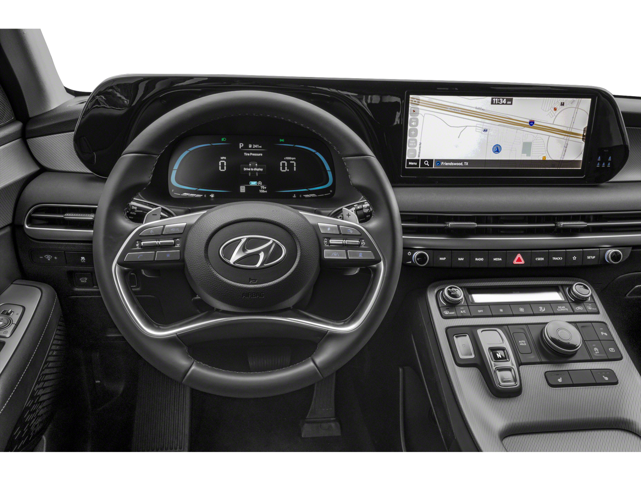 - Radio: AM/FM/MP3 Audio System -inc: 12.3" color touchscreen display, onboard navigation w/traffic flow including incident data via HD Radio (HERE), Over-the-Air (OTA) map updates, SiriusXM, USB, Android Auto and Apple CarPlay, rear seat quiet mode, Bluetooth® hands-free connectivity w/multiple device connection and wireless audio streaming, Wifi hotspot, dynamic voice recognition and Bluelink Connected Car System